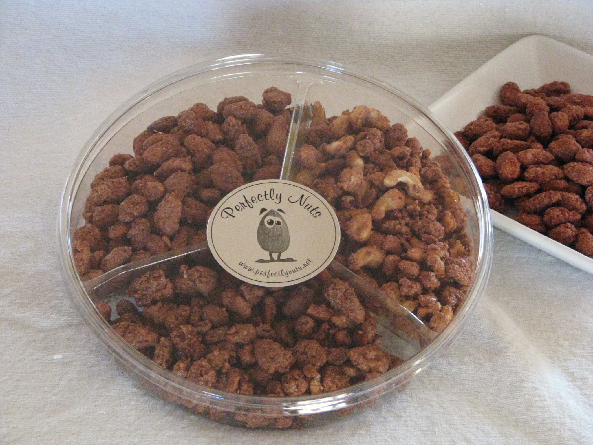 You will get our 1.5 lb variety tray with 1/2 lb each of our finest cinnamon roasted almonds, sunflower seeds and pecans. Or try our cocoa roasted almonds, chocolate covered almonds or cinnamon roasted cashews. No matter which 3 flavors you pick you are bound to be happy. Great for a gift, party or just as a snack. We also offer free delivery in the FM area on orders over $25.00. Please contact us directly for this offer. Need us to add a special note or decorative bow? We can do that!